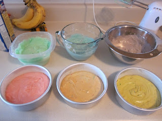 If there's anything Ali's been sure of the last few days it's that she's going to have a birthday, she is turning 3 and she'll have a RAINBOW cake. We had a lot of fun making it, and it turned out cute!! I love being a mom!!